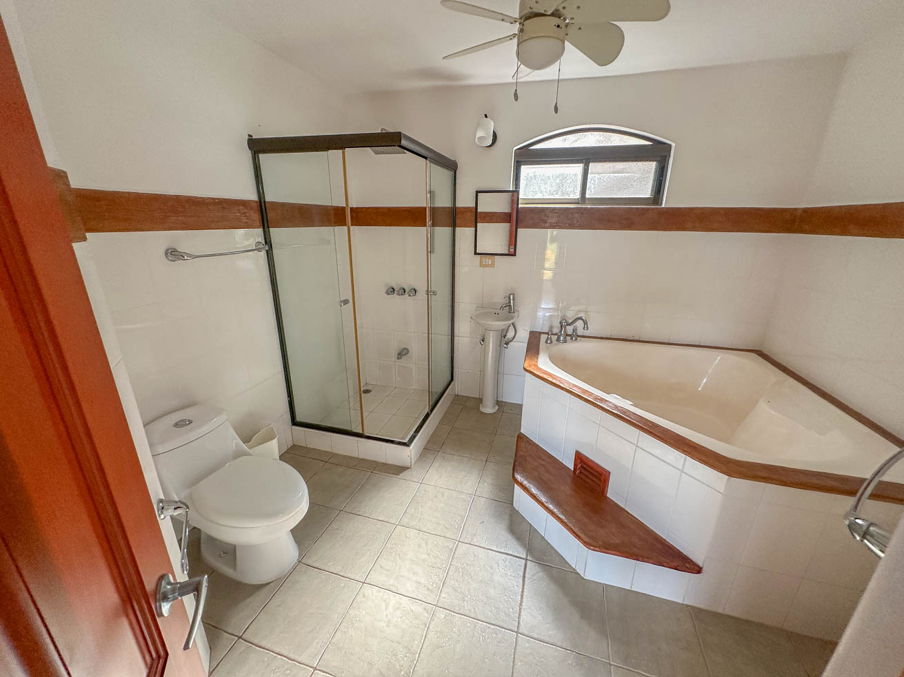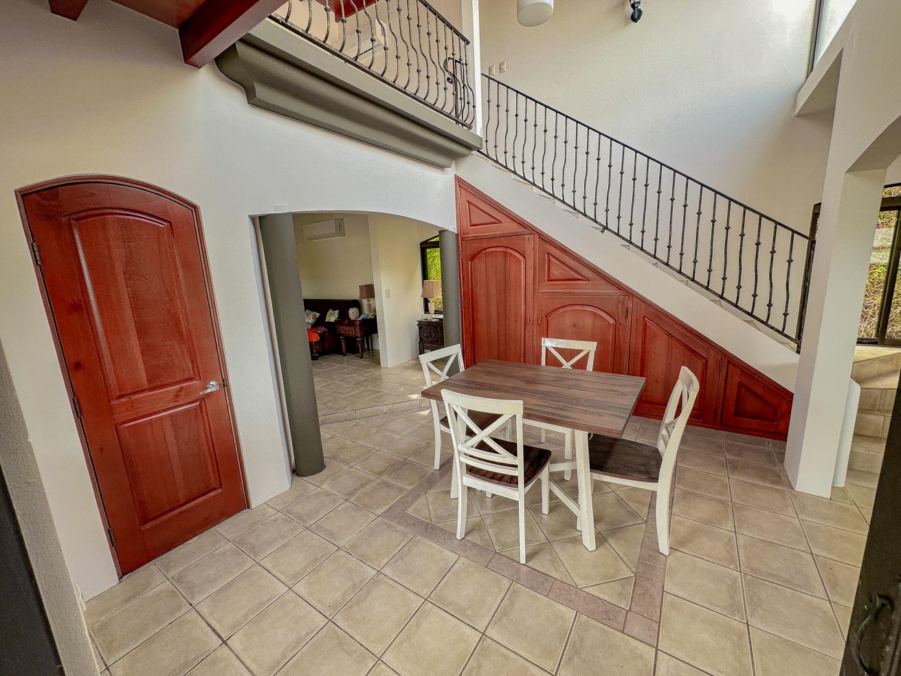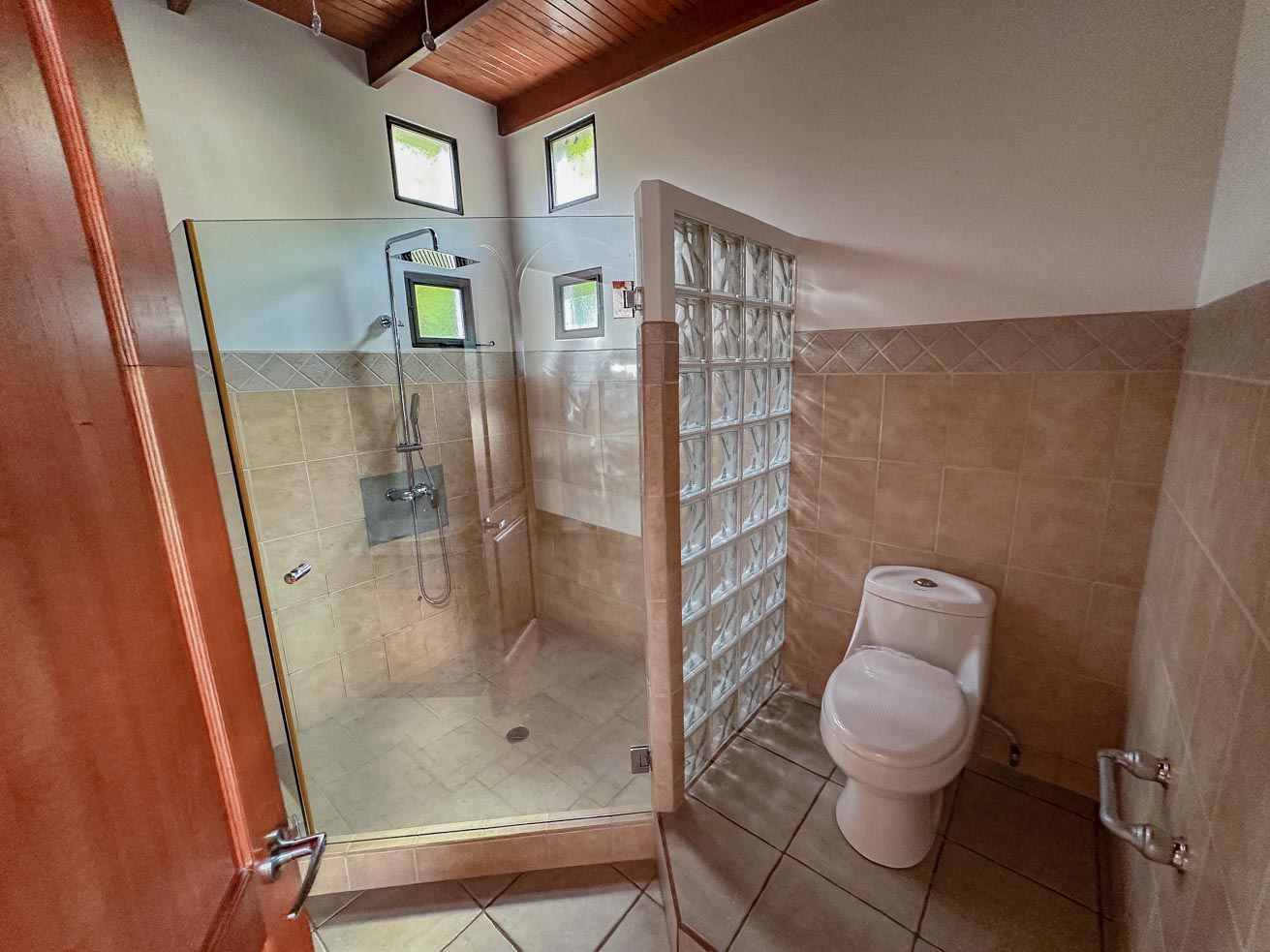 Los interiores combinan paredes blancas, azulejos brillantes y detalles en madera natural, lo que crea un ambiente luminoso, acogedor y elegante. Aire acondicionado en toda la villa y ventanas con vistas a la selva completan esta experiencia residencial única.